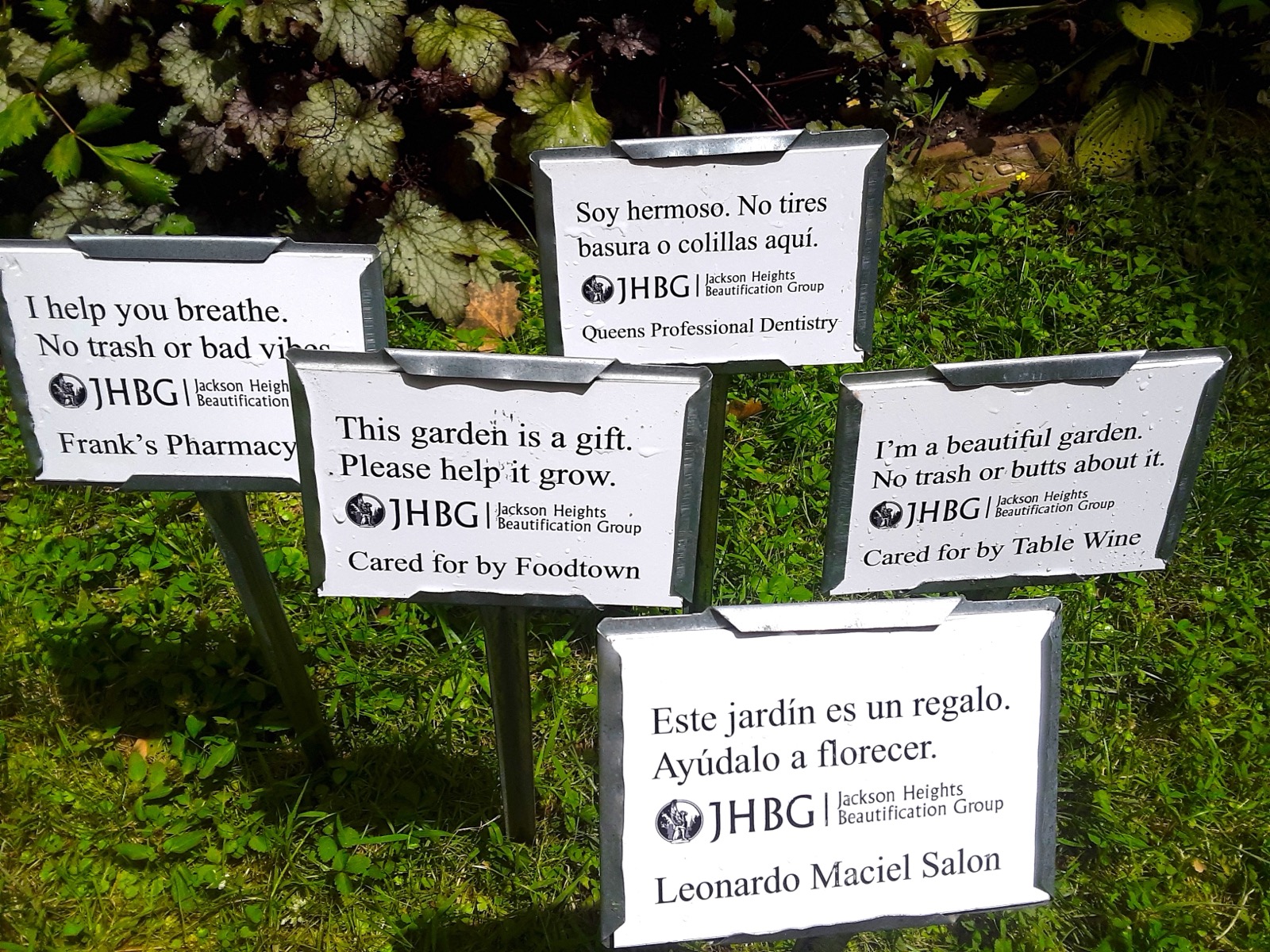 Our goals go far beyond making Jackson Heights look pretty; we see these trees and gardens as making our neighborhood more environmentally sustainable, by cleaning the air and absorbing stormwater that would pollute surrounding waterways or result in flooding. In the face of extreme heat due to climate change, trees are especially important. They are nature’s air conditioners. Areas with many trees, especially big trees, are significantly cooler than neighborhoods lacking them. In turn, these spaces become mini-habitats for beneficial insects and birds. We are expanding this ecosystem across the 11372 ZIP Code with a project we call the Jackson Heights Pollinator Pathway. Along with public spaces, this project is expanding to homes and apartment buildings. That’s the idea behind our slogan “Making Jackson Heights Mother Nature’s home in the city.”